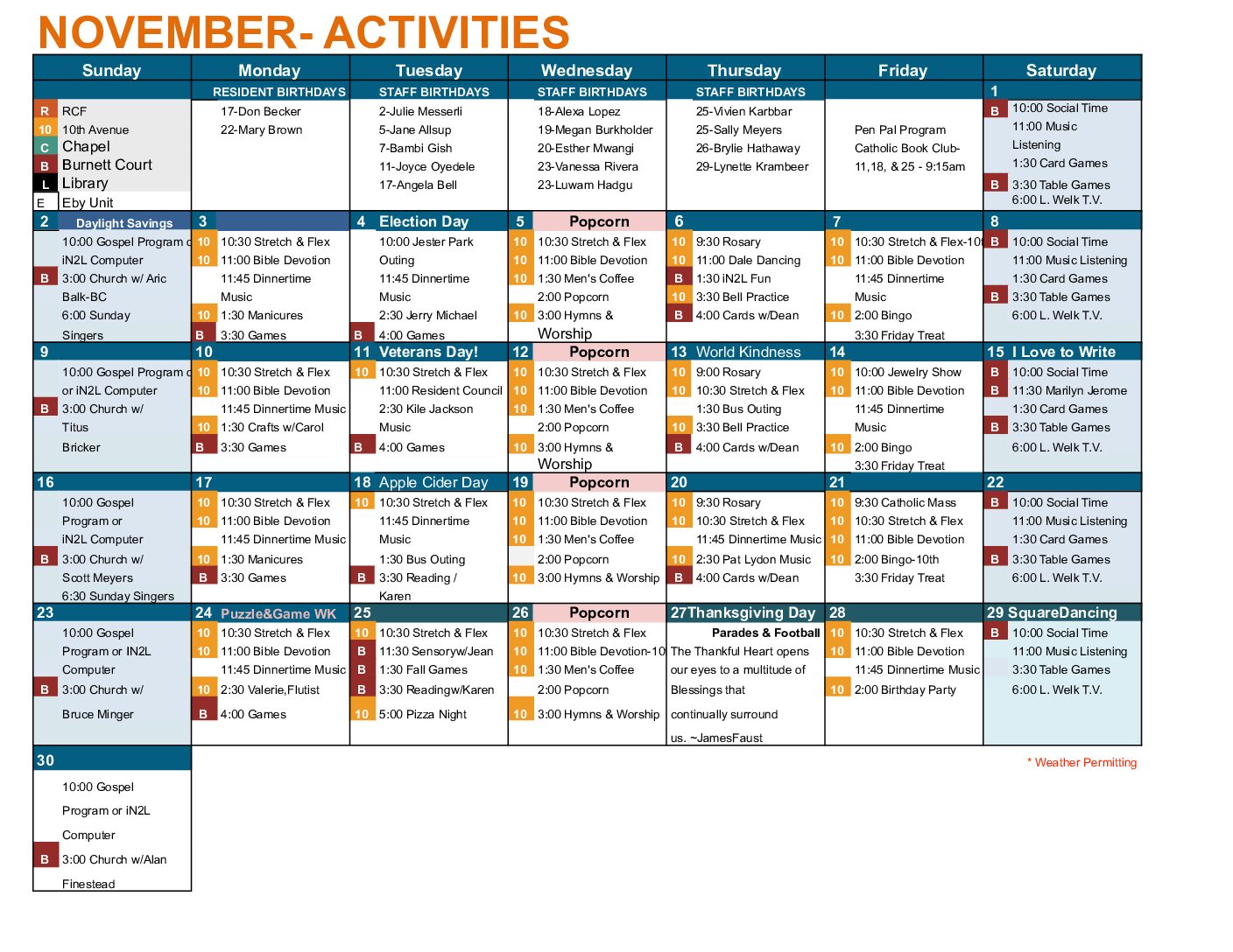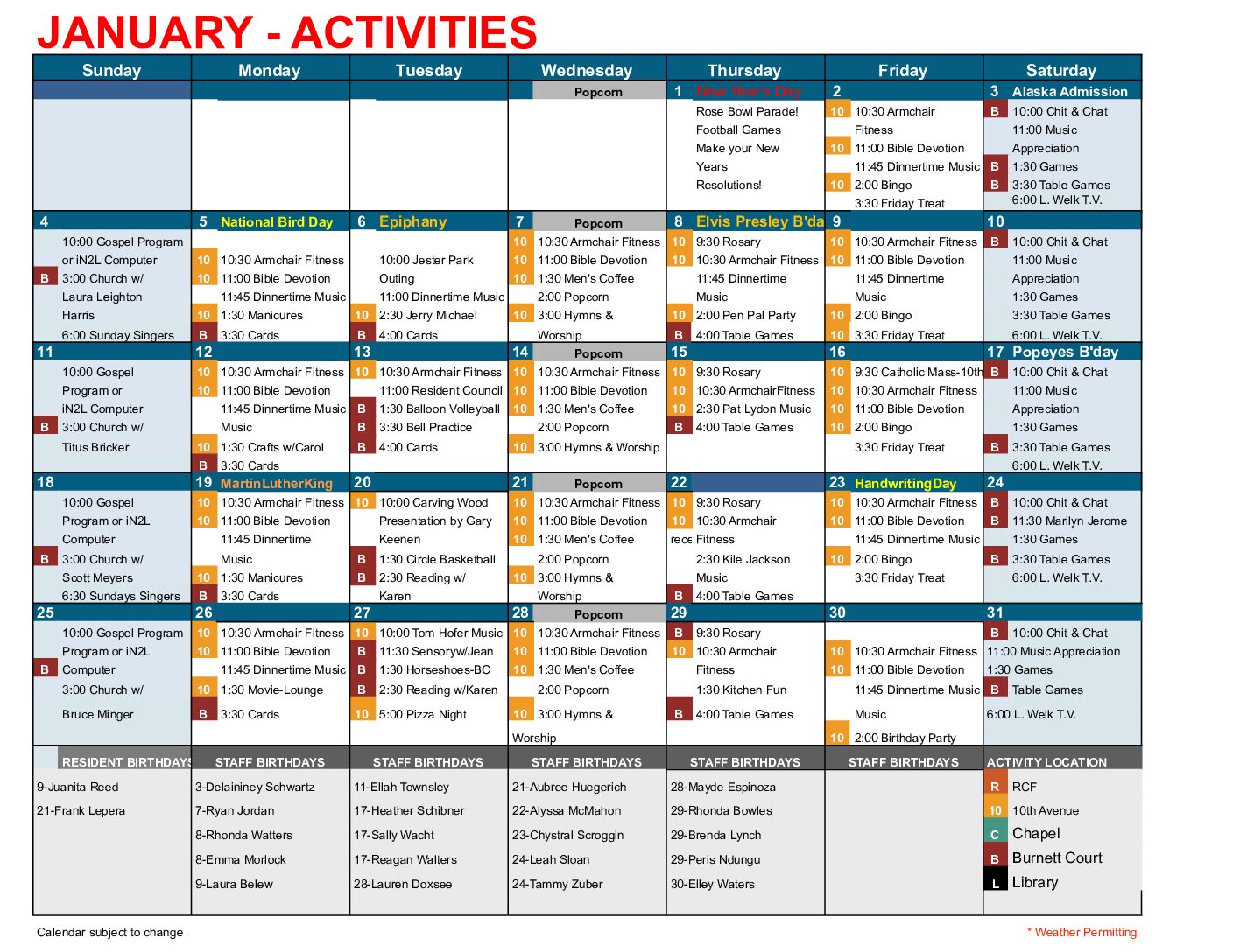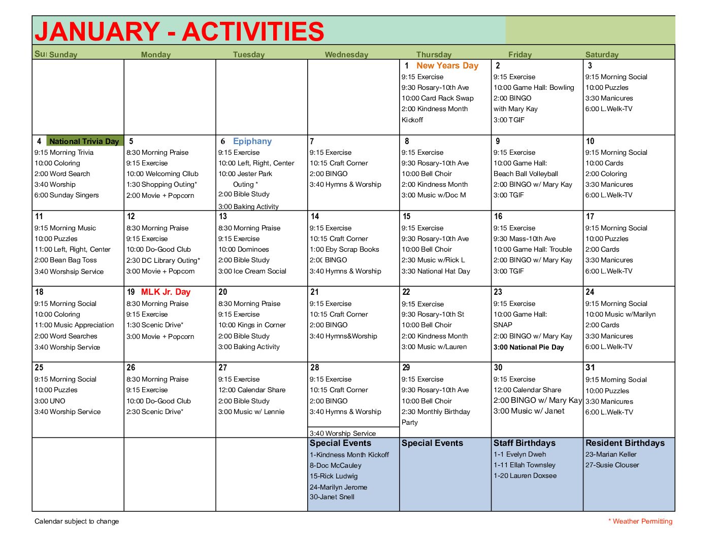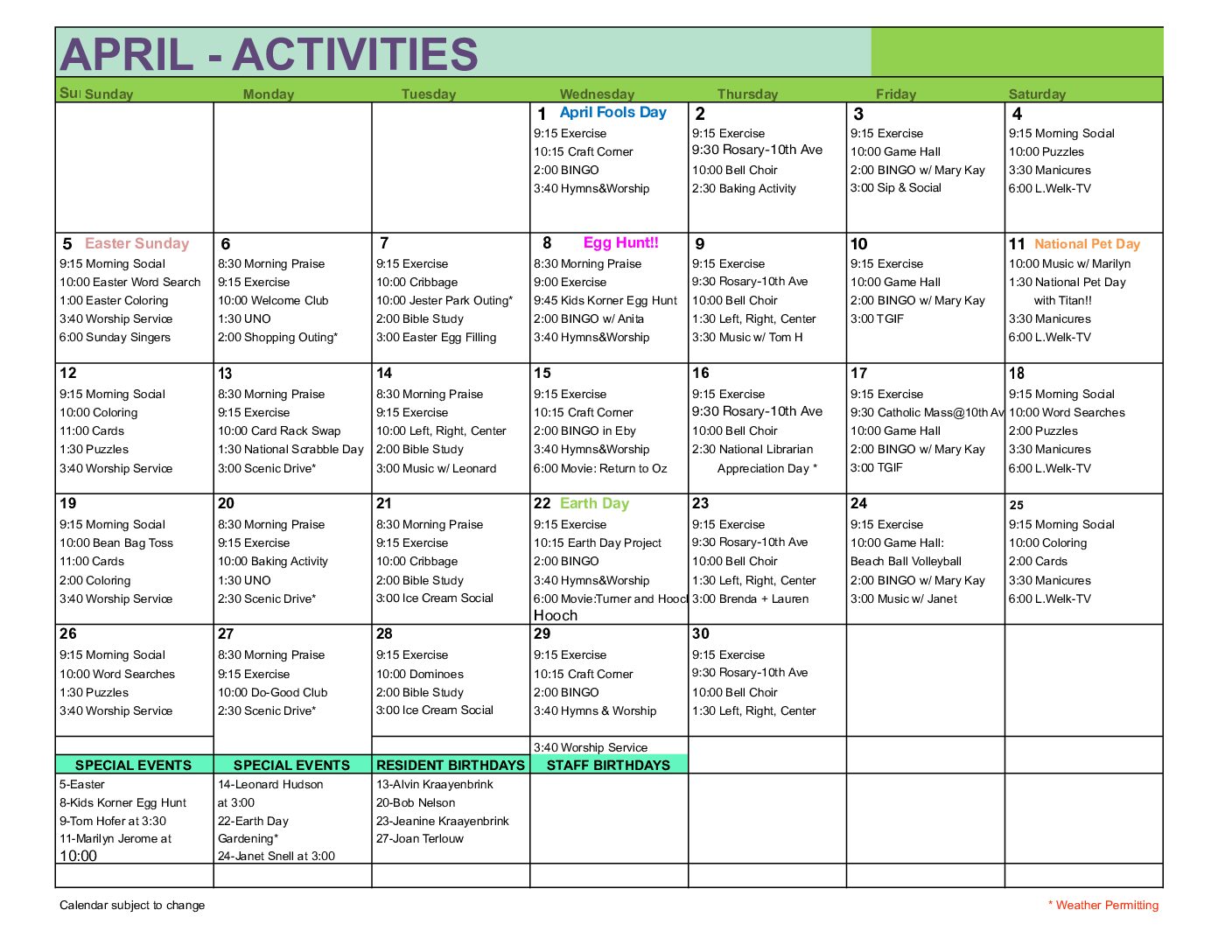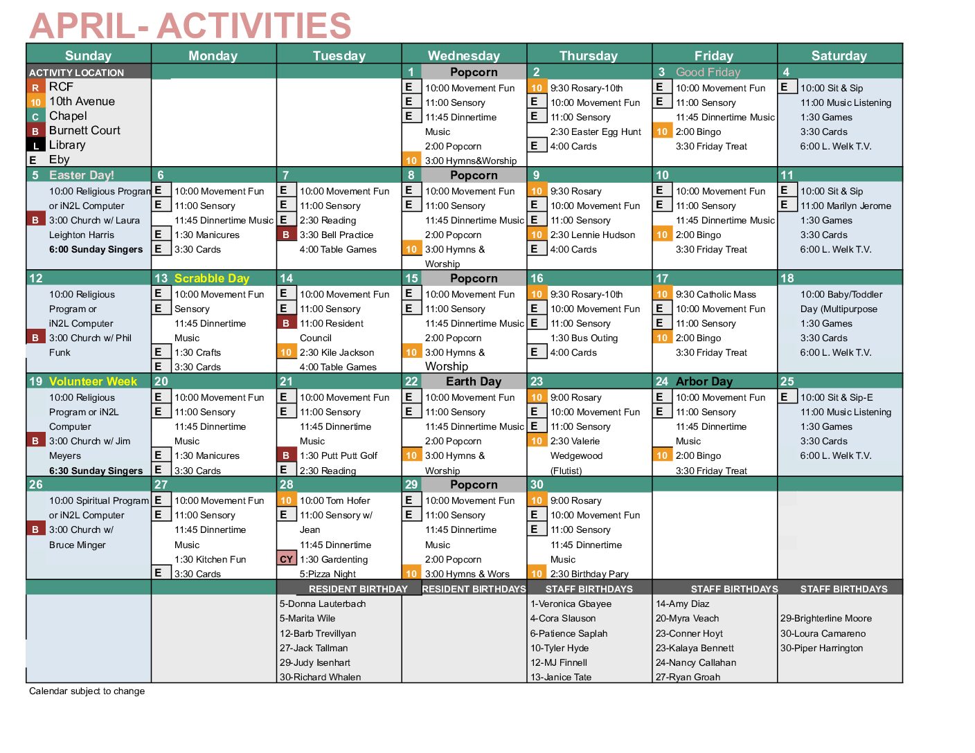 Our activities calendars are thoughtfully designed to enrich the lives of our cherished residents, providing a diverse array of engaging and fulfilling experiences. We understand that retirement is a time for continued growth and connecting with like-minded individuals. Each of our activities calendars are tailored to meet the level of care for each of our residents.