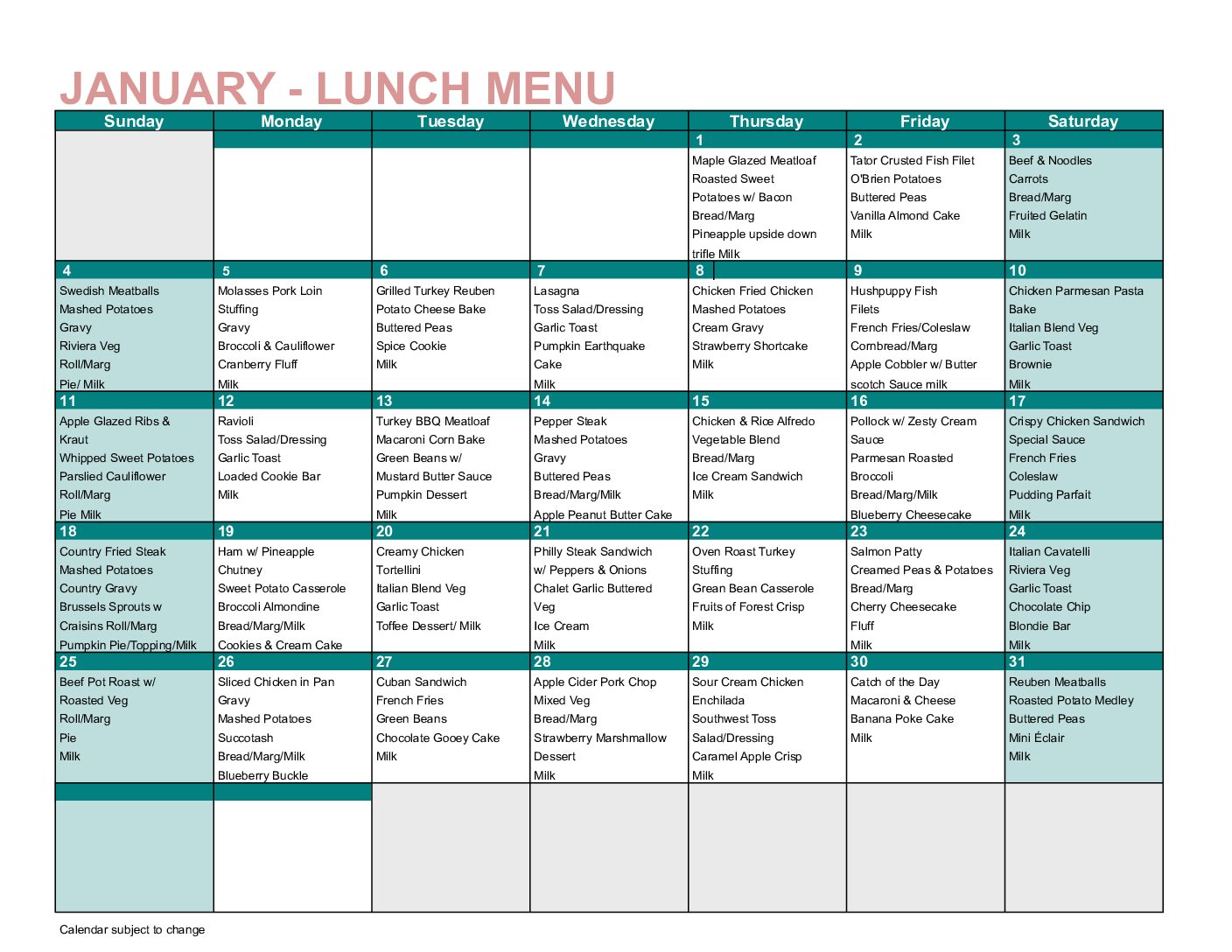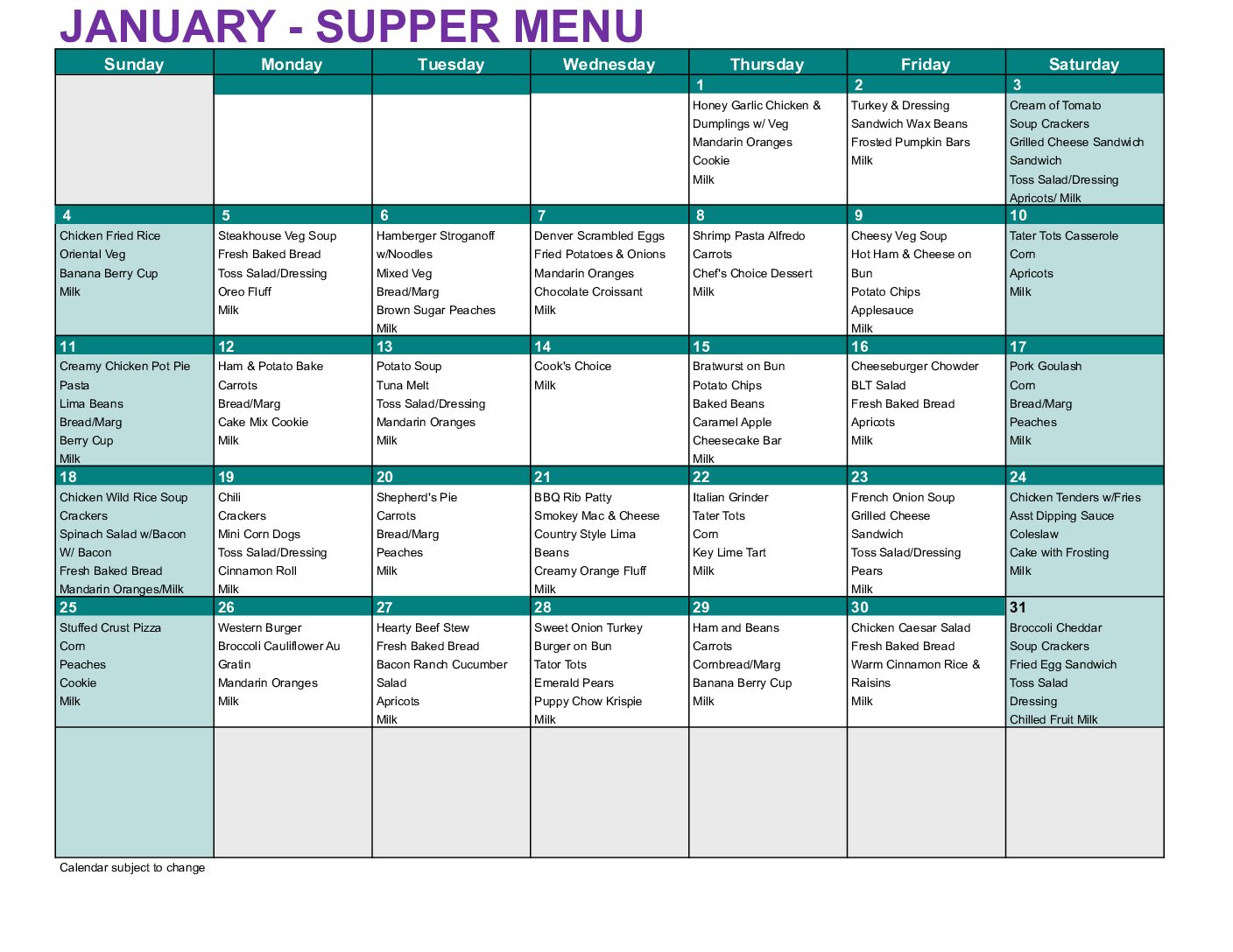 Lunch and Supper Calendars